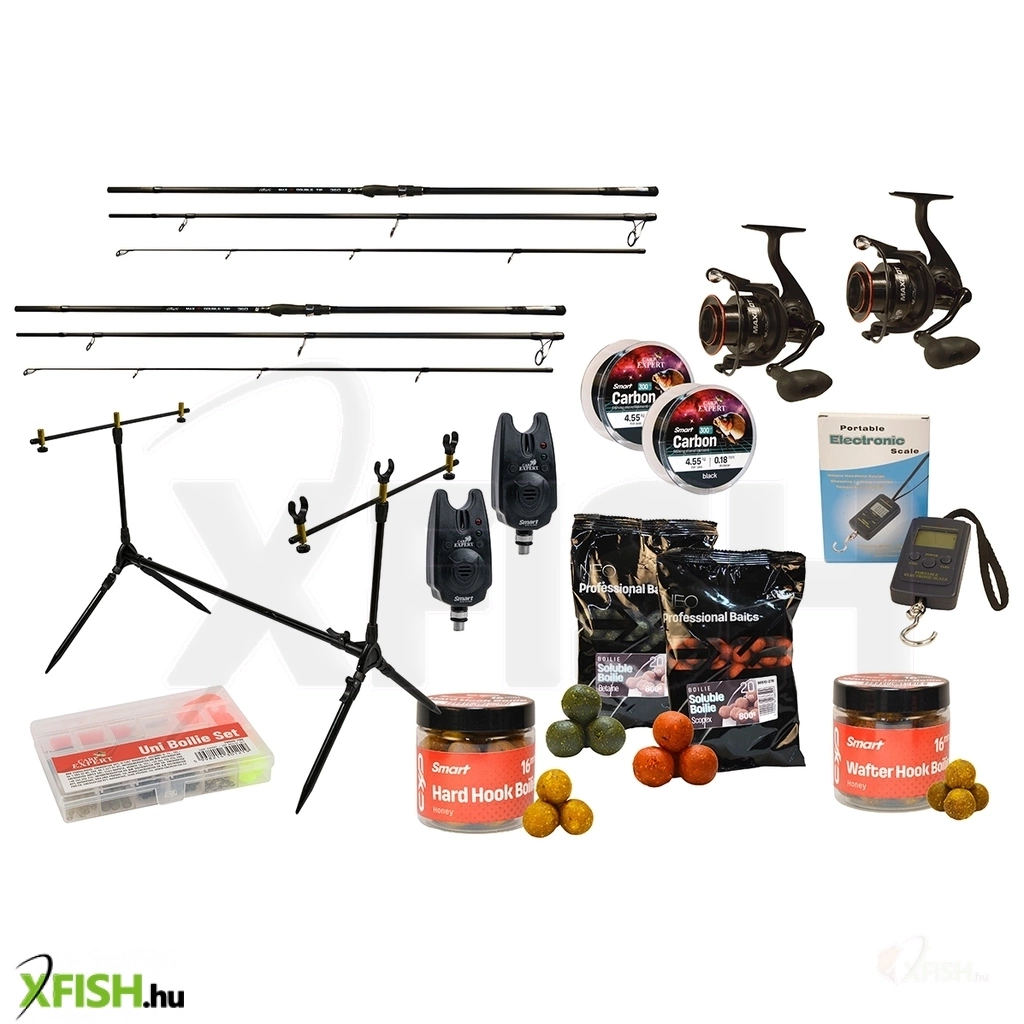 Egy teljes értékű, kétbotos pontyhorgász felszerelés egy csomagban, amely ideális választás azoknak a horgászoknak, akik egy komplett bojlis szettel szeretnének nekivágni a horgászatnak. A gondosan összeállított csomag tartalmaz két bojlis botot, két orsót, zsinórokat, rod-podot, elektromos kapásjelzőket, kiegészítőket, bojlikat és még egy praktikus mérleget is.