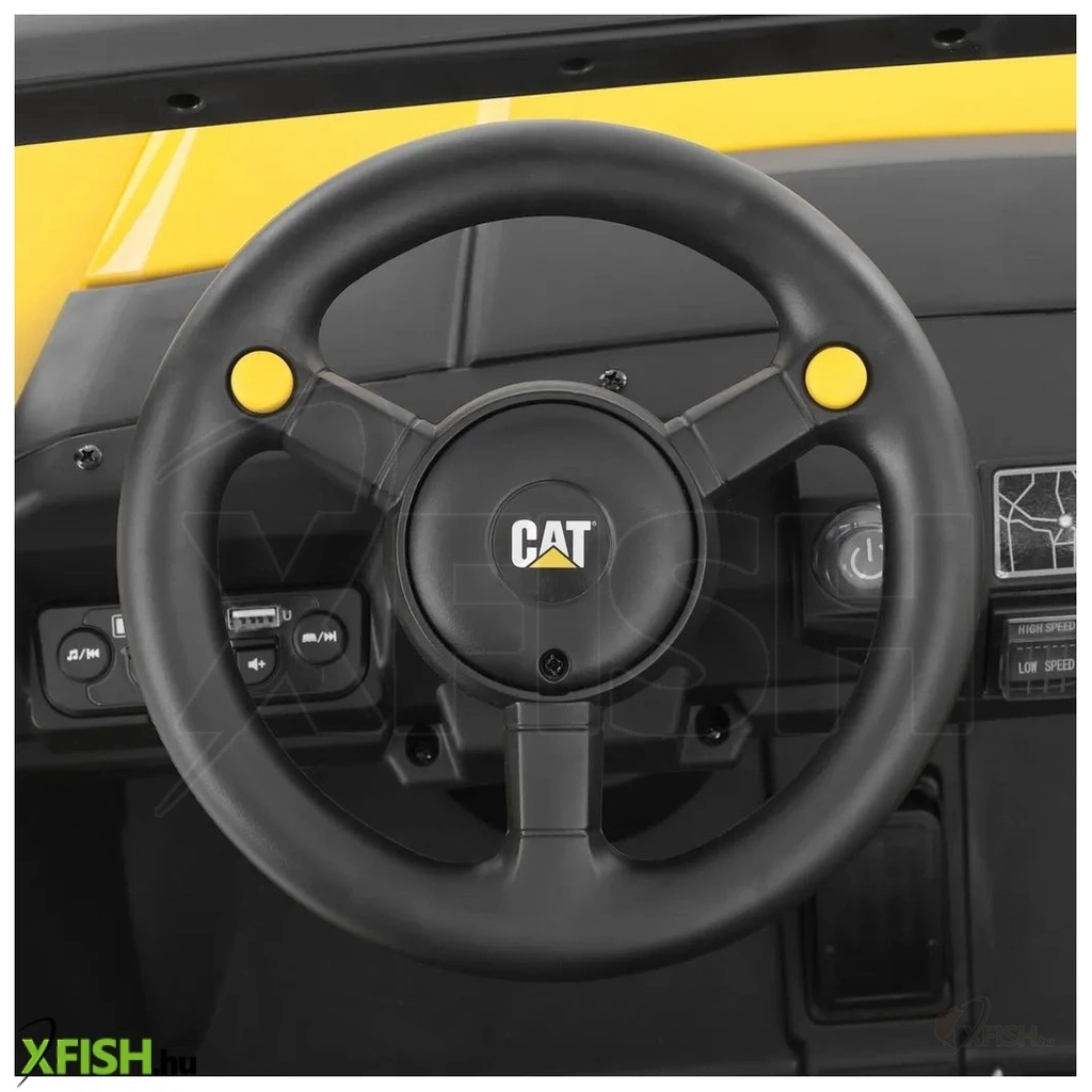 A CAT UTV fény- és hangeffektekkel , hátrameneti fokozattal, nagy csomagtartóval, távirányítóval és audio bemenettel van felszerelve . Biztonságos és stílusos jármű, amely a kényelmes távirányítónak köszönhetően a szülőknek is örömet okoz.