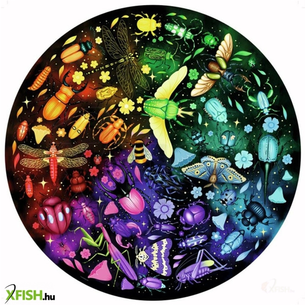 Puzzle 500 db kör - Rovarok Merülj el a természet csodáiban ezzel a lenyűgöző, 500 darabos kör alakú rovaros puzzle-val! Ez a különleges kirakó tökéletes választás minden természetkedvelő és puzzle-rajongó számára, aki szereti a kihívásokat és a részletgazdag képeket.