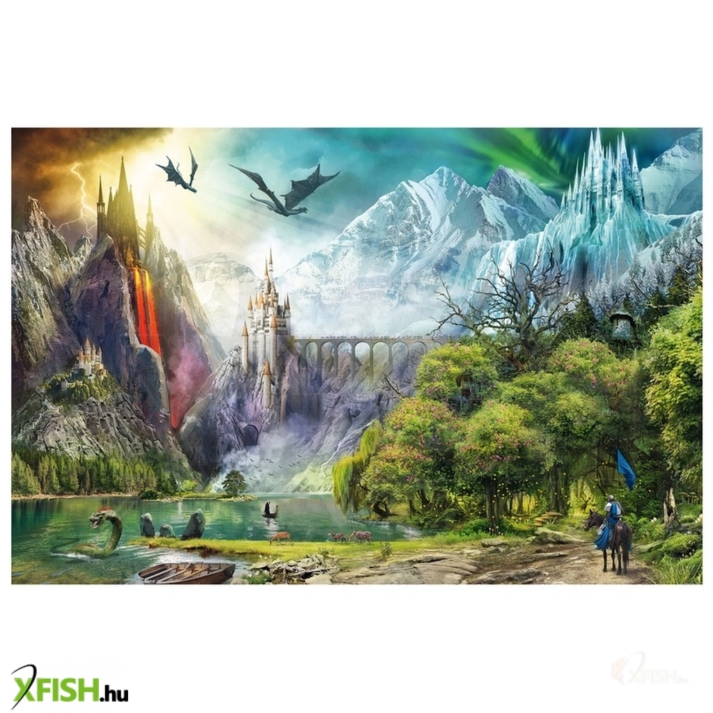 Egy mesésen szép puzzle, az előtérben harsogó zöld fákkal, egy magányos lovassal, erdei állatokkal és sárkányokkal, a háttérben sziklaszirten tornyosuló várakkal, folyékony tűzzel, jéggel, viharfelhőkkel és sarki fénnyel. A gyönyörű részletekben gazdag kirakó mintha egy fantasy film látványtervezőjének kezei közül került volna ki.