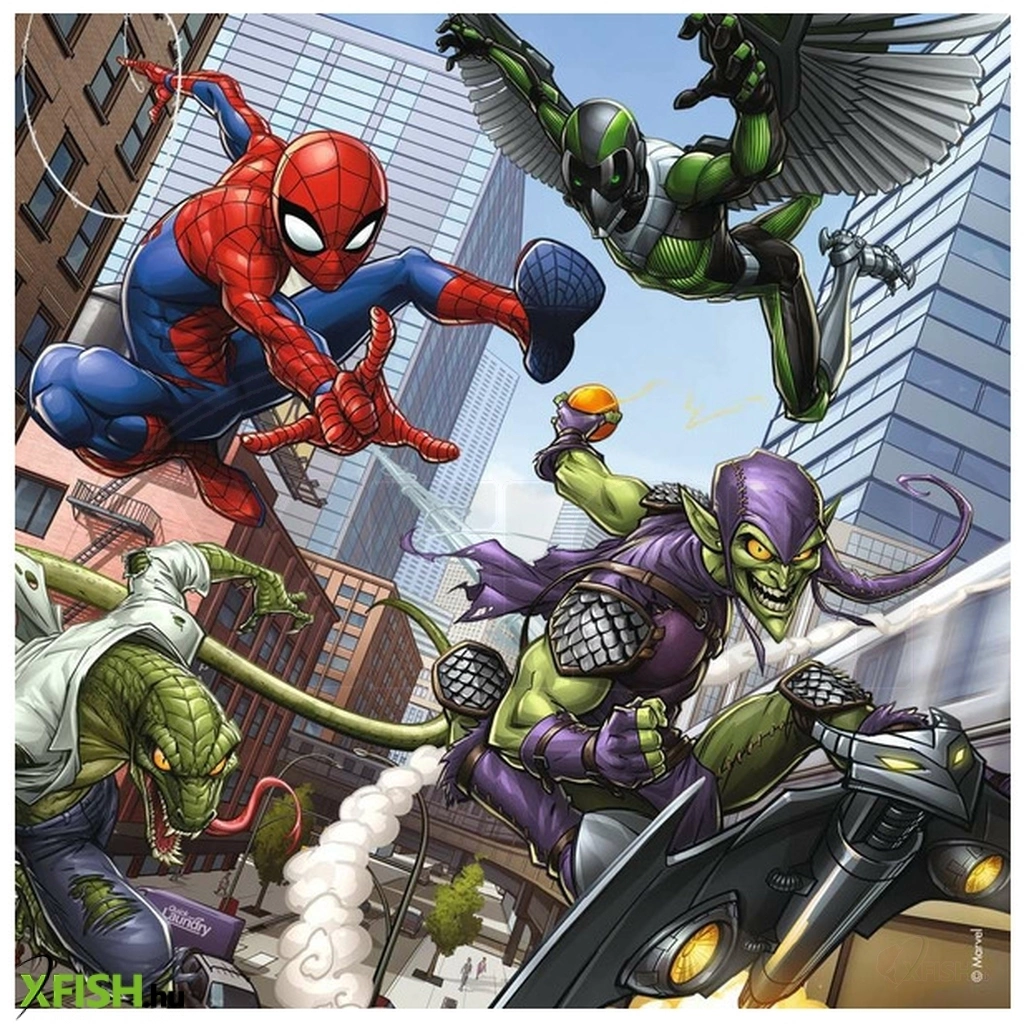 Ez a 3 dinamikus képből álló készlet a Pókembert mutatja be akció közben, amint megpróbálja leküzdeni az összes gonosz ellenséget, a szupererős kölyök arachnidot, a zöld koboldot, a keselyűt és a gyíkot. 3 x 49 darabos gyerekrejtvényünk prémium minőségben készült, és 17,8 x 17,8 cm-es, amikor elkészült. Remek rejtvények 5 éves kortól. Tökéletes játékok gyermeke számára – A rejtvények minden életkorú gyerekeknek segítik a gyermek fejlődését játék közben, fejlesztik a koncentrációt és a kreativitást.