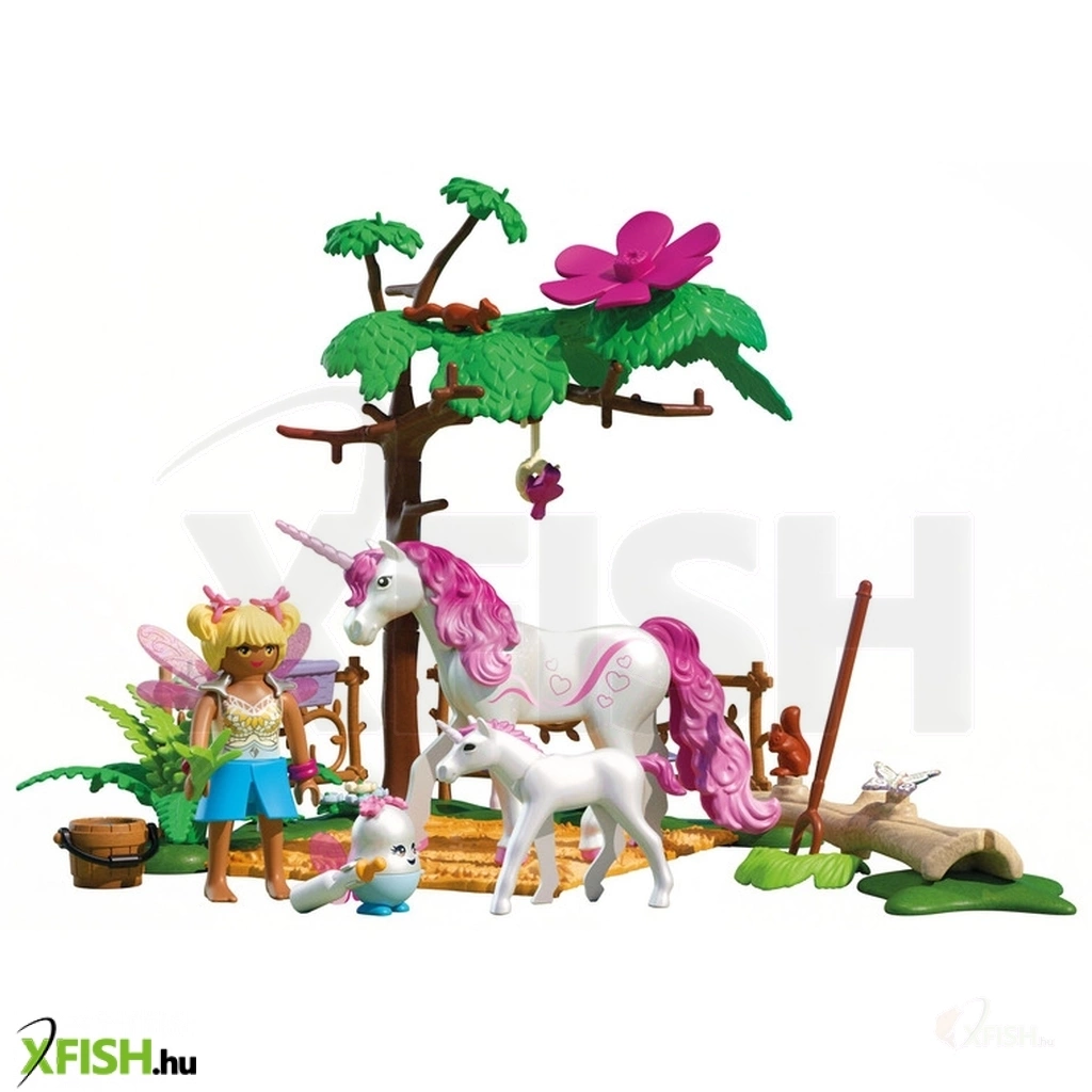 A Playmobil varázslatos egyszarvú istálló mamának és a kiscsikónak egy elbűvölő játékszett, amely a tündérek és unikornisok csodálatos világába repíti a gyerekeket. A készlet egy szerethető egyszarvú mamát és aranyos csikóját, valamint egy tündér figurát tartalmaz, akik egy hangulatos, varázslatos istállóban élnek.