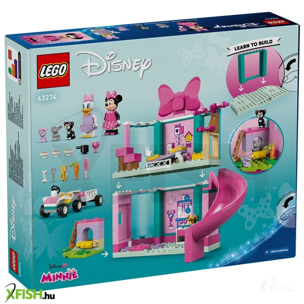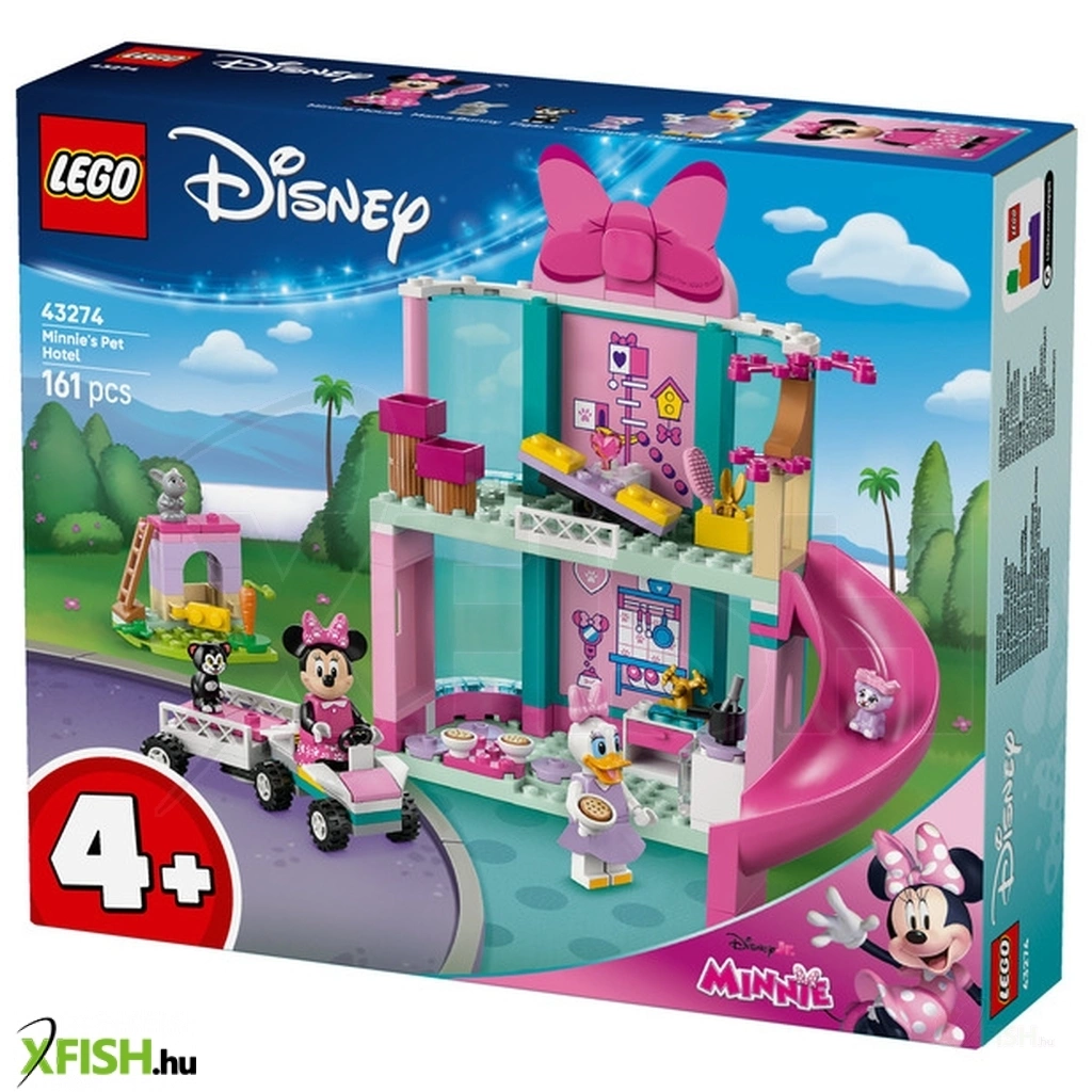 A Mickey egér játszótere című Disney-műsor 4 éves vagy nagyobb rajongói eljátszhatják a gondoskodást, miközben építeni tanulnak a Lego(R) | Disney Minnie kisállatpanziója (43274) építőszettel. Ez a gyerekeknek készült, megépíthető, apró ajándékötlettartalmaz egy csúszdával felszerelt, 2-szintes panziót egy játék konyhát, egy nyúlketrecet, egy kicsi utánfutóval felszerelt autót, és ez még nem minden! A szettben megtalálod Minnie egér és Daisy kacsa Lego(R) | Disney minifiguráit, valamint a Figaro, Creampuff és Nyuszi mama Lego | Disney kisállatfigurákat is.