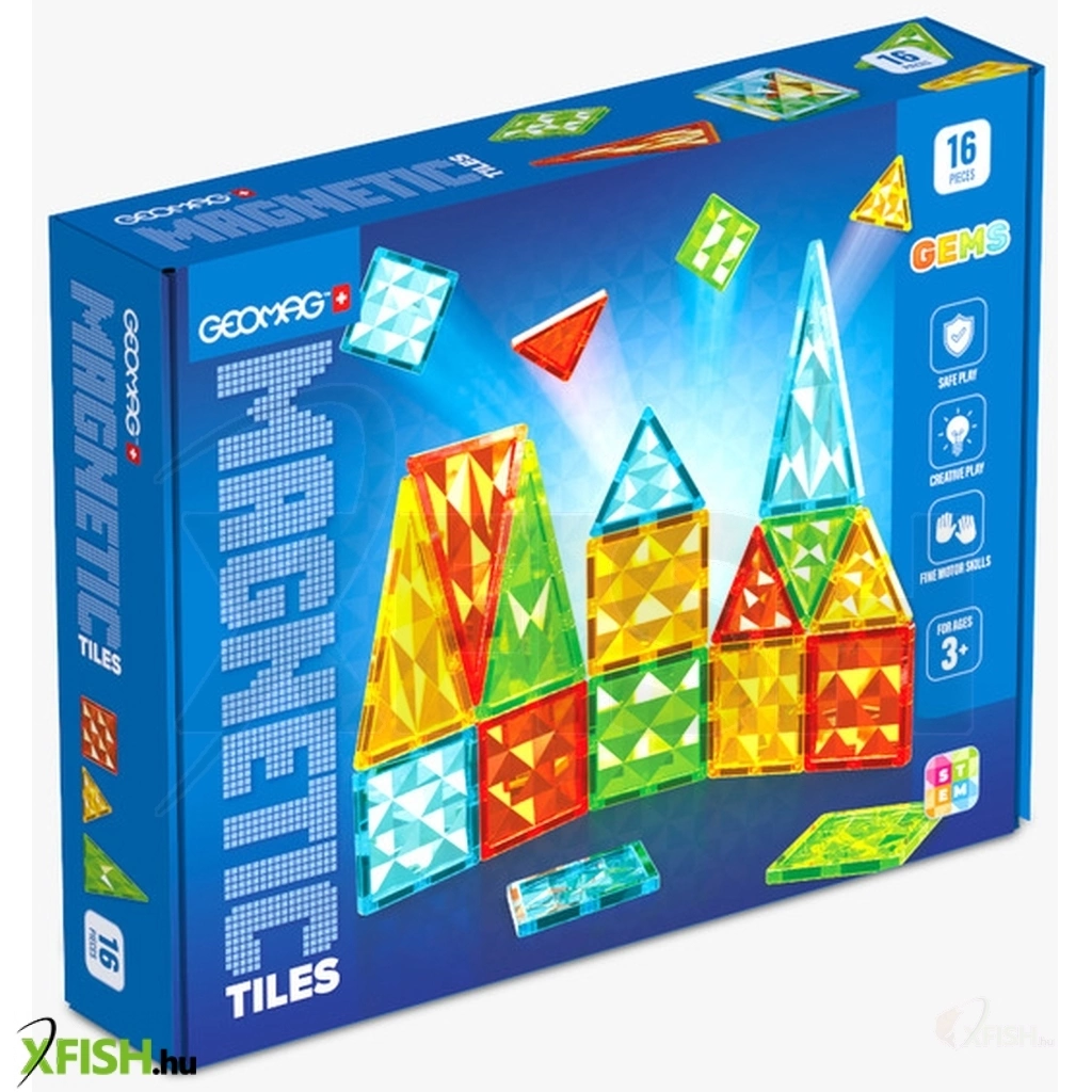 Geomag Magnetic Tiles Gems 16 Lépj be a Geomag Magnetic Tiles Gems 16 varázslatos és színes világába, ahol a képzelet határtalan, és minden egyes elem egy új kaland kezdete lehet. Ez az innovatív mágneses építőjáték nemcsak lenyűgöző szórakozást nyújt, hanem fejlesztő hatással is bír, így tökéletes választás minden korosztály számára – a kíváncsi kisgyermekektől egészen a kreativitásukat megőrző felnőttekig. A készlet lehetővé teszi, hogy a felhasználók különféle 2D-s és 3D-s struktúrákat hozzanak létre, miközben játékosan fejlesztik térlátásukat, finommotorikájukat, valamint kreatív és problémamegoldó készségeiket. A mágneses elemek könnyen összeilleszthetők, ezáltal a játék intuitív és élvezetes élményt nyújt kezdőknek és haladóknak egyaránt. Fedezd fel az építés örömét, alkoss szabadon, és engedd szárnyalni a fantáziádat a Geomag Magnetic Tiles Gems 16 segítségével!