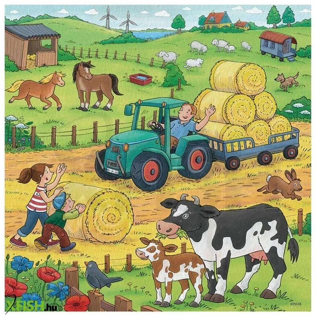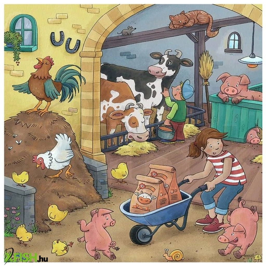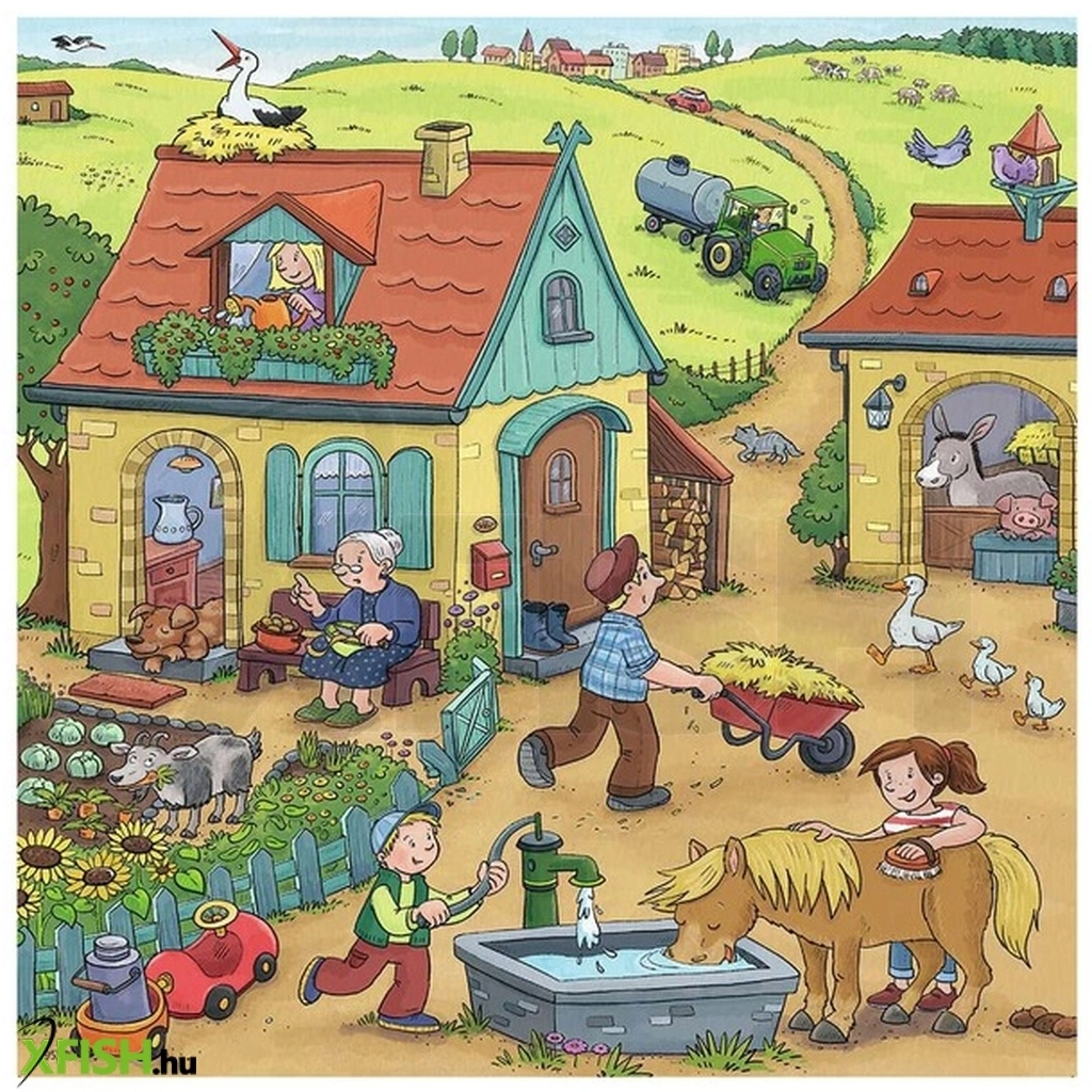 A Ravensburger 3x49 db-os Élet a farmon puzzle remek kikapcsolódás és koncentráció fejlesztő elfoglaltság akár az egész család számára, vagy csak önmagunk szórakoztatására. Az összerakott puzzle mérete 21 cm x 21 cm. A kirakót 5 éves kortól ajánljuk.