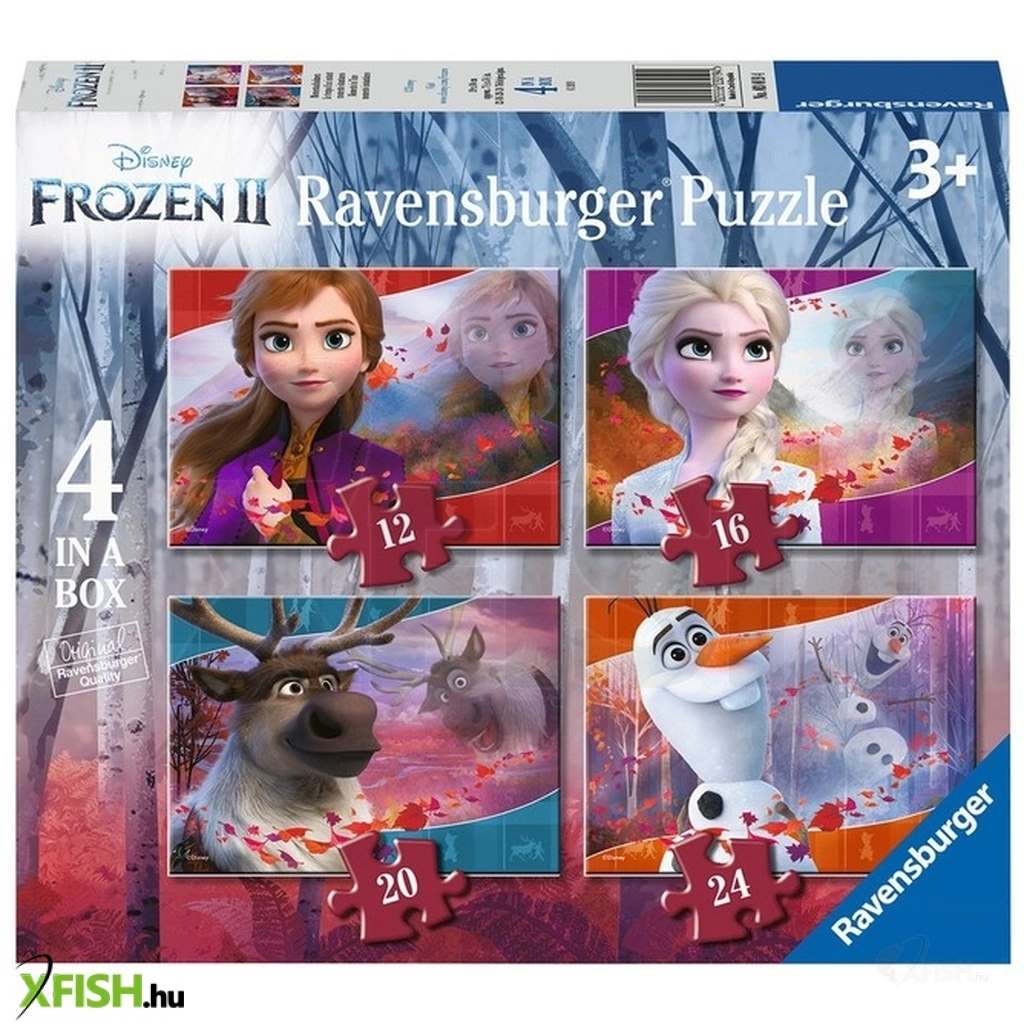 Vágj neki a jeges kalandnak ezzel a Puzzle 4in1 - Jégvarázs II termékkel! Négy színes kirakó vár rád, hogy egymásba illeszd építőelemeit a Diseny Frozen 2 film kedvenc karaktereivel. Anna, Elza, Sven és Olaf segítség nélkül nem lehet teljes, láss hát hozzá, és a fokozott nehézségű kihívást vidd végig! A Puzzle 4in1 - Jégvarázs 2 csomag több kirakót tartalmaz (12, 16, 20 és 24 darabosat). Az összeállított képek méretei: 19 x 24 cm. A játékot 3 éven aluliaknak nem ajánljuk.