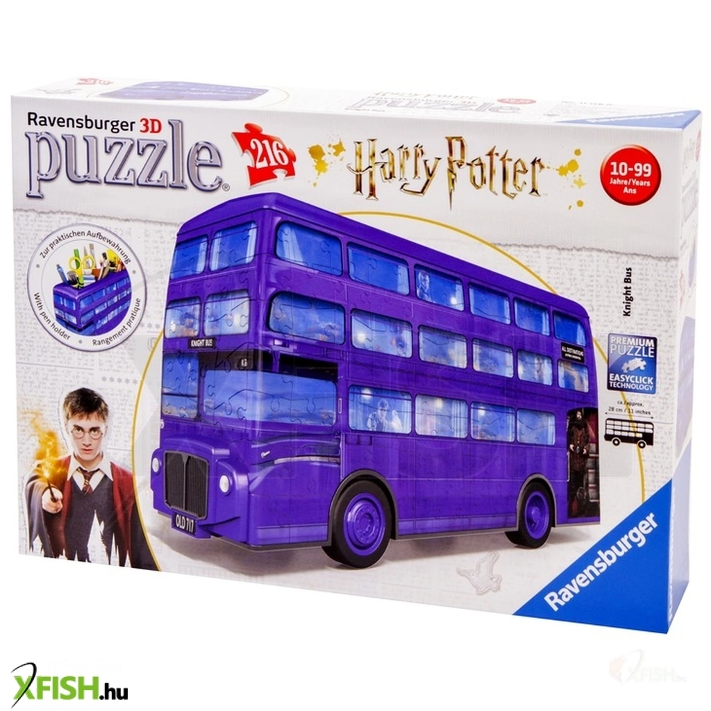 Utazz Te is a 3D Puzzle - Harry Potter kóbor grimbusszal! Ha nem szeretsz hoppanálni, vagy fázós vagy, és emiatt nem tudsz seprűn utazni, építsd meg a Harry Potter és az Azkabani fogoly filmben felbukkanó kóbor grimbuszodat. A 216 darabból álló háromdimenziós kirakó építőelemei pontosan passzolnak egymáshoz, így hozva létre a J. K. Rowling által megálmodott csodajárműt. Ráadásul az íróasztalodra téve még az íróeszközeidet is tárolhatod benne! A 3D Puzzle - Harry Potter kóbor grimbusz csomagolásának méretei: 31 x 21 x 7 cm. A játékot 10 éves kortól ajánljuk.