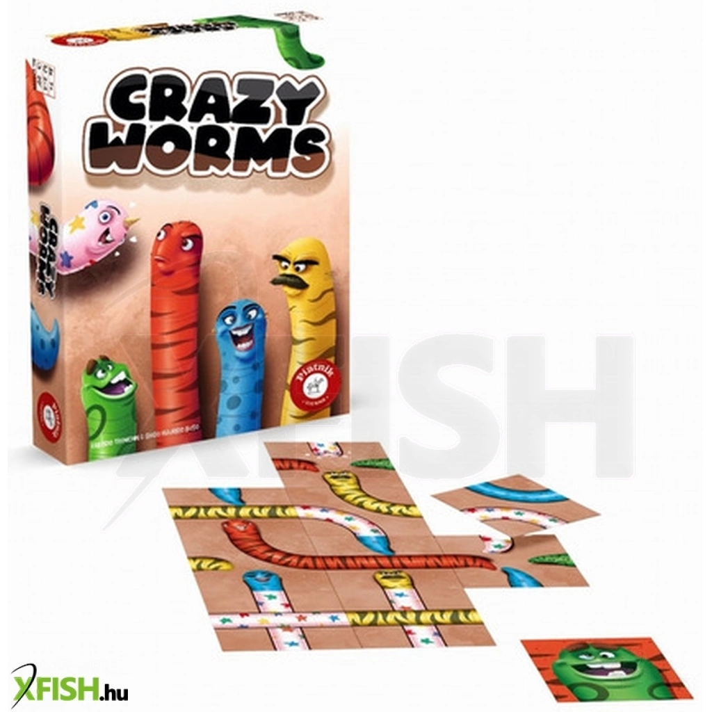 A Piatnik Crazy Worms társasjáték egy pörgős, könnyen tanulható családi játék, amelyben a cél, hogy a játékosok a saját színükben minél hosszabb és értékesebb kukacokat építsenek, miközben folyamatosan alkalmazkodnak a többiek lépéseihez és a játéktér alakulásához, a kétoldalas lapkák miatt minden döntés számít, hiszen mindig mérlegelni kell, melyik oldalt érdemes lehelyezni a maximális pontszerzés érdekében, a játék 2–4 fővel játszható, átlagosan 15–20 percig tart és már 7 éves kortól ajánlott, így ideális választás családi játékestekhez vagy gyors partijátékhoz, fejleszti a logikai gondolkodást, a térlátást és a taktikai érzéket, miközben végig szórakoztató és könnyed marad.