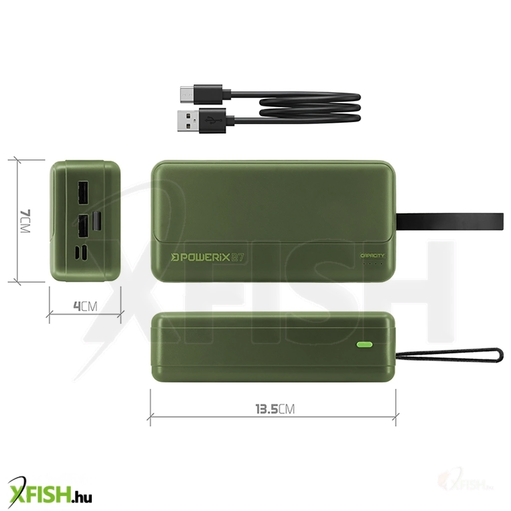 A powerbank kialakítása a gyakorlati használatot és a nagyfokú tartósságot szem előtt tartva készült. A masszív házat egy beépített akasztófül egészíti ki, amely lehetővé teszi, hogy például egy sátorban biztonságosan felakasztható legyen. A POWERIX modellel biztos lehet benne, hogy felszerelése elegendő energiával rendelkezik majd a teljes horgászat ideje alatt.
