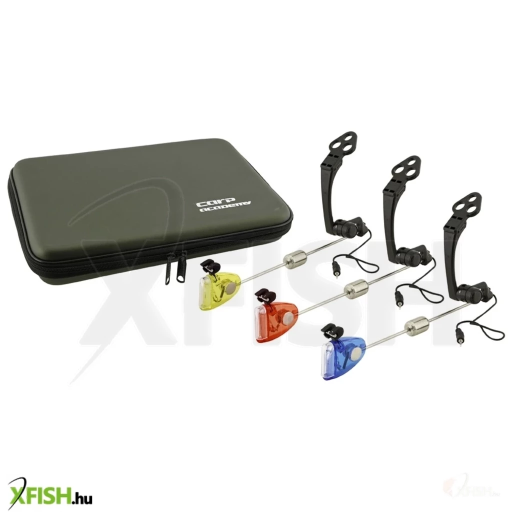 Ebben a 3 részes swinger szettben a Carp Academy legnépszerűbb karos és beépített ledes villanófénnyel ellátott swingerei kaptak helyet. Szállításkor nagy segítségünkre lesz a kemény tokos vastag szivaccsal borított hordozó doboz, amely jól megóvja tartalmát a különböző sérülésektől. Így sokáig élvezhetjük swingereink hibátlan működését. A készletben egy piros, egy sárga és egy kék színű swinger található. Amit még a Sensor swingerekről tudni érdemes: A Carp Academy Sensor Swinger remek minőségén kívül a kedvező árával is magára irányítja a figyelmet. Ez egy merev karos swinger, melyen a 42 grammos súly mozgatásával növelhetjük, vagy csökkenthetjük a zsinórra gyakorolt ellenállást. Főleg az ejtős kapások érzékelésében van nagy szerepe. A swinger műanyag tartórészébe beépített rugóval változtathatjuk a swinger erőhatását a zsinórra. Viharos szélben hatalmas segítséget jelent a feszesre állított swinger, gyorsan egyenesbe hozza a zsinórt. A zsinórcsíptetőt is tetszés szerint állíthatjuk, zsinórunk vastagságának megfelelően. Ezt a swingerfej alján található tekerőgombbal precízen és gyorsan megtehetjük. Így garantáltan leold bevágáskor, bármilyen vastag zsinórt is használunk! A gyártók az éjszakai horgászatokra is gondoltak. A Swingerfejbe építettek egy ledet is, mely kapás esetén világít, persze előtte csatlakoztatni kell a kapásjelzőhöz. Ezen kívül a swingerfejbe világítópatron is helyezhető.