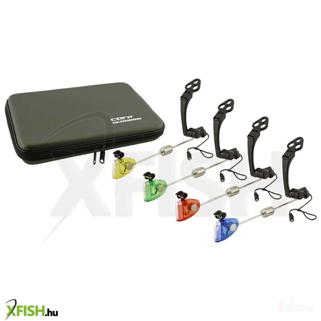 Ebben a 4 részes swinger szettben a Carp Academy legnépszerűbb karos és beépített ledes villanófénnyel ellátott swingerei kaptak helyet. Szállításkor nagy segítségünkre lesz a kemény tokos vastag szivaccsal borított hordozó doboz, amely jól megóvja tartalmát a különböző sérülésektől. Így sokáig élvezhetjük swingereink hibátlan működését. A készletben egy piros, egy sárga egy zöld és egy kék színű swinger található. Amit még a Sensor swingerekről tudni érdemes: A Carp Academy Sensor Swinger remek minőségén kívül a kedvező árával is magára irányítja a figyelmet. Ez egy merev karos swinger, melyen a 42 grammos súly mozgatásával növelhetjük, vagy csökkenthetjük a zsinórra gyakorolt ellenállást. Főleg az ejtős kapások érzékelésében van nagy szerepe. A swinger műanyag tartórészébe beépített rugóval változtathatjuk a swinger erőhatását a zsinórra. Viharos szélben hatalmas segítséget jelent a feszesre állított swinger, gyorsan egyenesbe hozza a zsinórt. A zsinórcsíptetőt is tetszés szerint állíthatjuk, zsinórunk vastagságának megfelelően. Ezt a swingerfej alján található tekerőgombbal precízen és gyorsan megtehetjük. Így garantáltan leold bevágáskor, bármilyen vastag zsinórt is használunk! A gyártók az éjszakai horgászatokra is gondoltak. A Swingerfejbe építettek egy ledet is, mely kapás esetén világít, persze előtte csatlakoztatni kell a kapásjelzőhöz. Ezen kívül a swingerfejbe világítópatron is helyezhető.