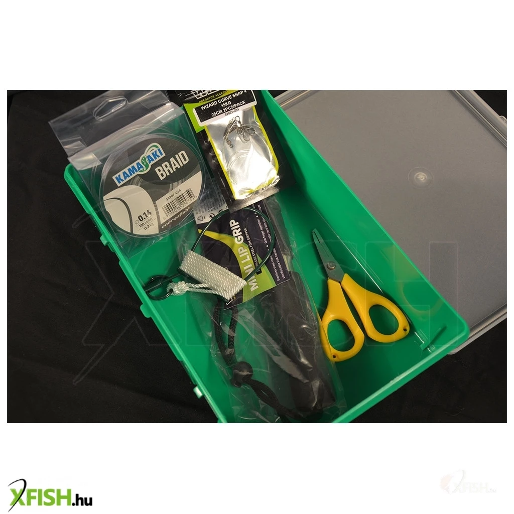 Sőt, szettünk részeként, most ez a praktikus doboz tele aprócikkel és műcsalival is elérhető. A csomag tartalma: - Predator doboz 26x17x7,5 cm - Wizard halkiemelő fogó - 1 csomag fluorocarbon előke - 10 darab horogggal ellátott műcsali, gumihal, swimbait - Szájbilincs - 2 darab villantó - 2 darab támolygó kanál - Olló - 100 méter fonott zsinór