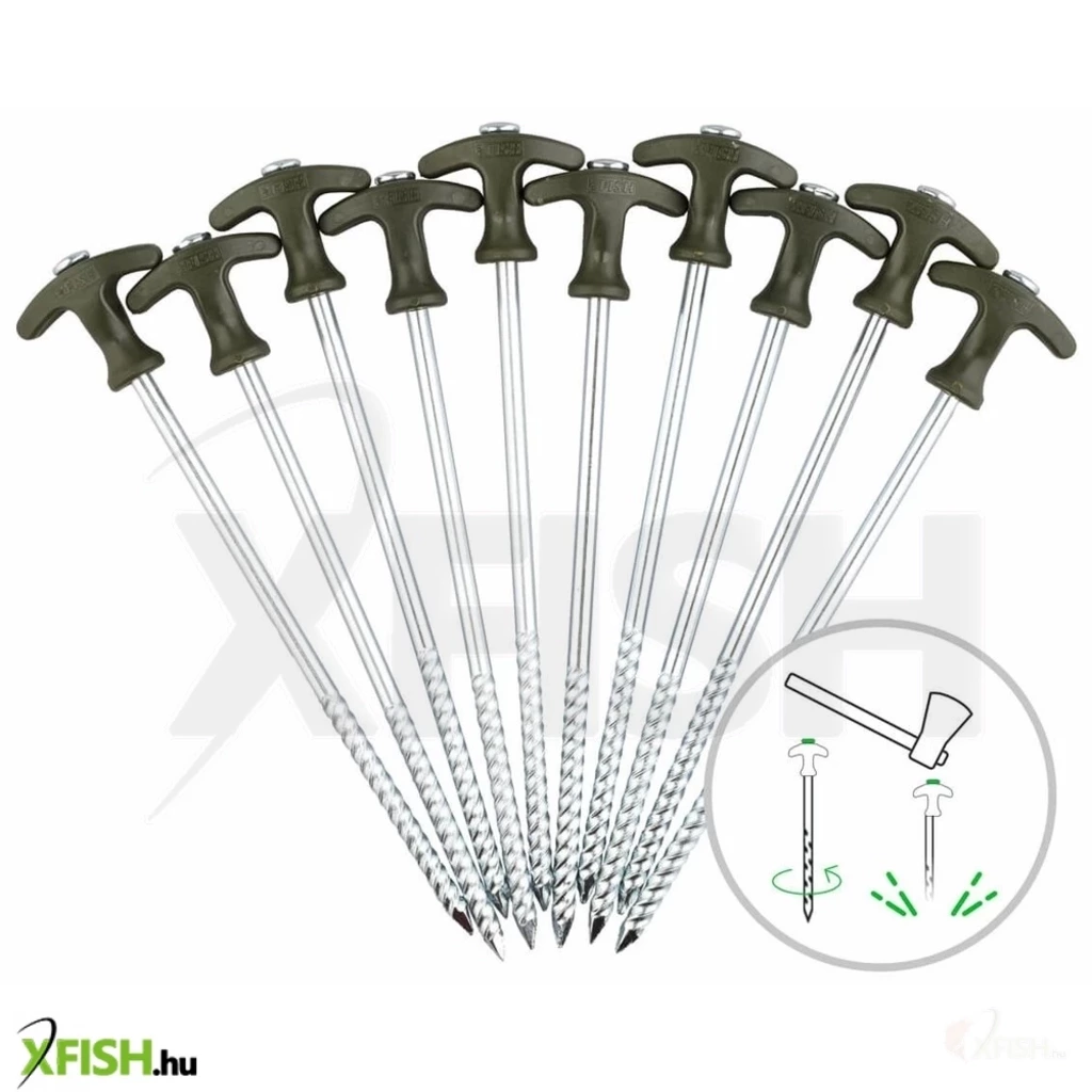 10 db-os fúrócsapból álló készlet sátrak megbízható rögzítéséhez.