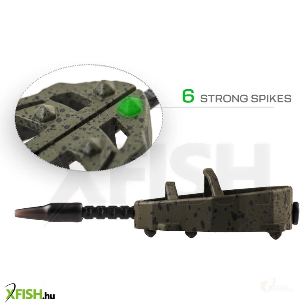 A Zfish Feeder Spider Medium Method Kosár a method feeder kosarak új generációját képviselő, precízen megtervezett és kivitelezett eszköz, amely a modern horgászok igényeihez igazodik. Tapasztalt ZFISH szakemberek bevonásával fejlesztették ki, hogy maximális hatékonyságot és megbízhatóságot nyújtson minden horgászhelyzetben. Az egyedi Spider forma tökéletes egyensúlyt biztosít dobás közben, valamint garantálja, hogy a kosár mindig megfelelő pozícióban érjen a mederfenékre, míg az új kialakítású tartókeret optimális etetőanyag-kioldást biztosít és egyben védi a horogcsalit dobáskor. A speciális platform pontos csali elhelyezést tesz lehetővé, így a csali mindig ideális pozícióban marad a kapások maximalizálása érdekében. A cserélhető csővel és hátsó nyílással ellátott rendszer gyors súlycserét tesz lehetővé újrakötés nélkül, ami jelentősen felgyorsítja a szerelék beállítását. A kosár ólommentes anyagból készült, gumírozott matt zöld felülettel és fekete pöttyökkel, amely tökéletes álcázást biztosít a mederfenéken és csökkenti a halak gyanakvását.