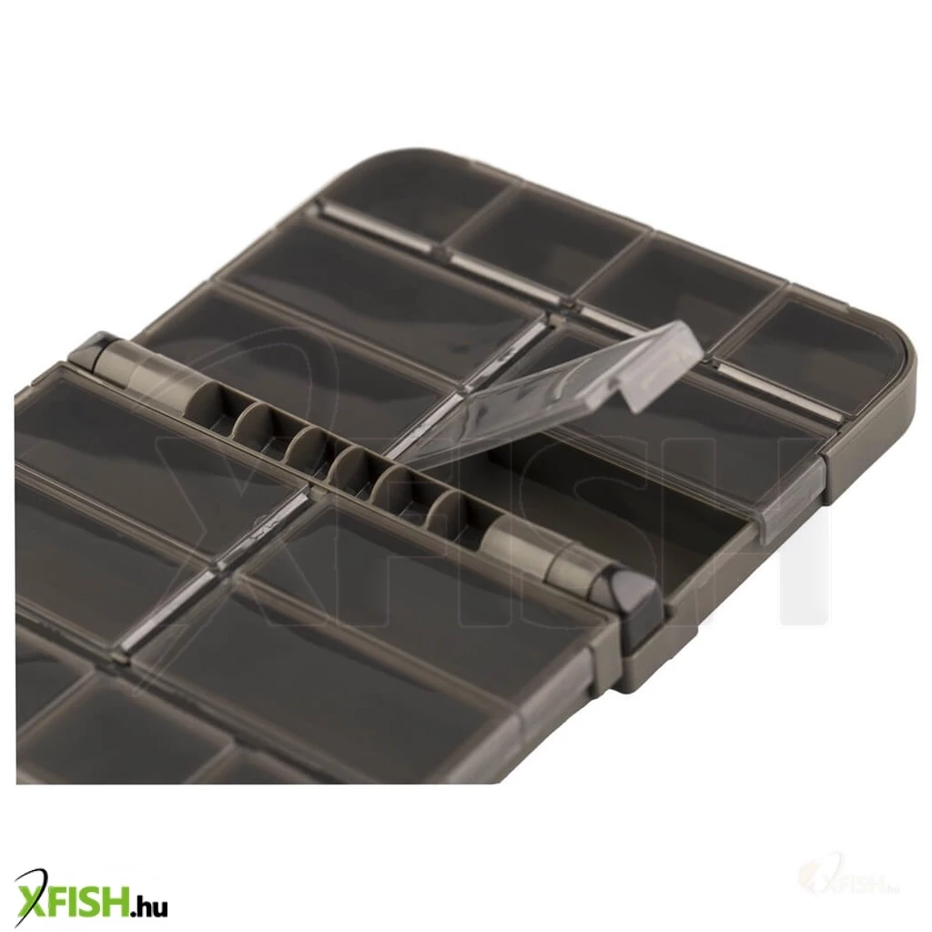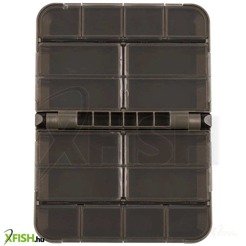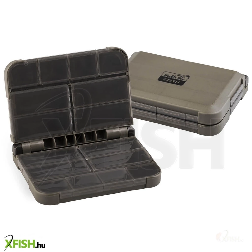 A ZFISH Mini Double Box L egy praktikus kétoldalas doboz/rendező a cseh ZFISH márkától. Ez a kompakt doboz 16 kisebb, önzáró rekesszel rendelkezik, átlátszó fedéllel, így könnyen és azonnal láthatja, hol és mit kell elérnie. A biztonságos záródást vagy a nem kívánt kinyílást nagyon erős zsanérok biztosítják. Az egyszerű és letisztult, ferde és lekerekített élekkel ellátott kialakítás nemcsak remekül néz ki, hanem a lekerekített formáknak köszönhetően maga a kezelés is sokkal kellemesebb. A kiváló benyomást csak hangsúlyozzák a tartós anyagok és alkatrészek egy nagyon elegáns, sötét olívazöld dizájnban. Ez a kompakt doboz például alkalmas a legkisebb terminálfelszerelések és kiegészítők tárolására, amelyeknek mindig kéznél kell lenniük, ideális esetben valahol a zsebében.