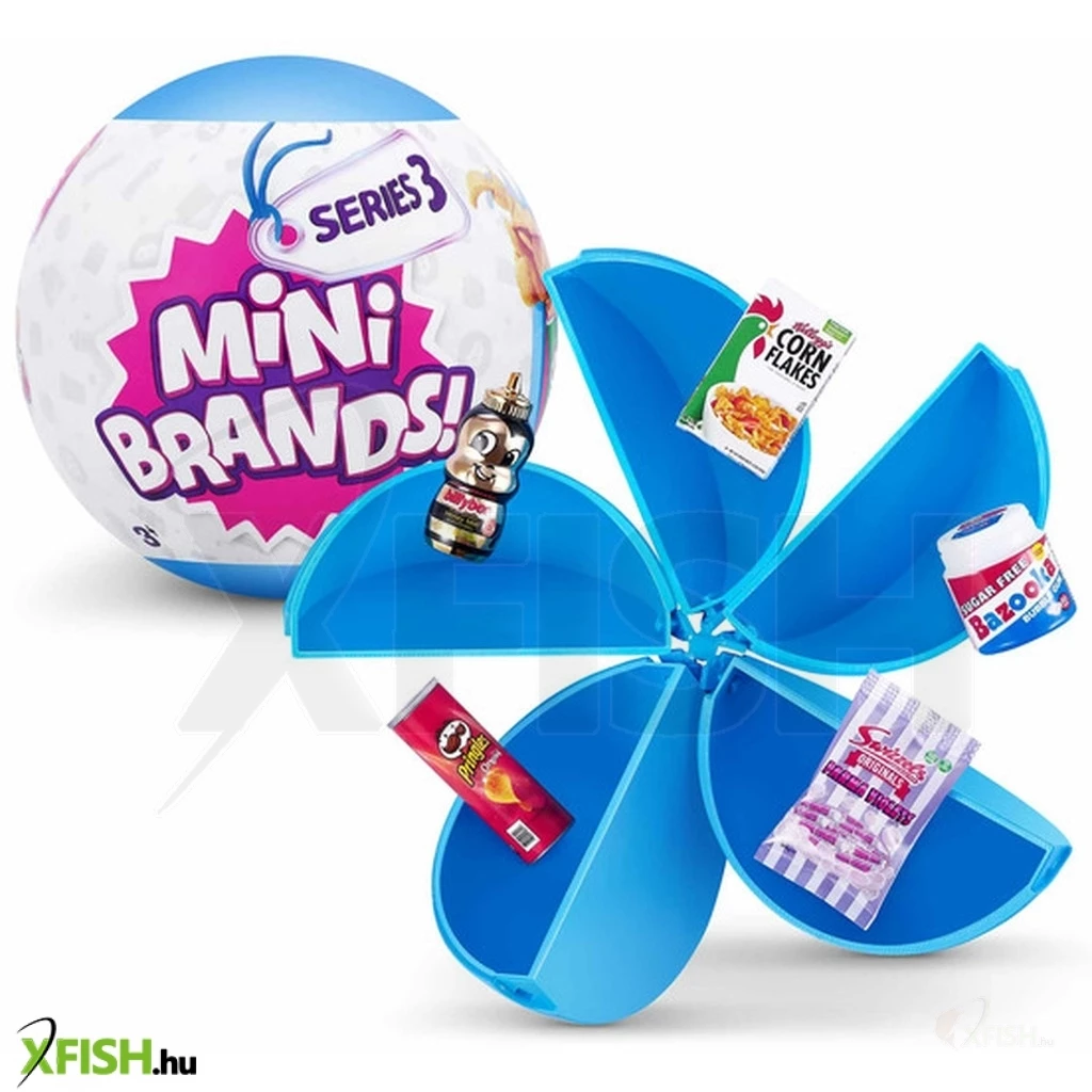 A Mini Brands mini világmárkák meglepetés csomagjában található aprócska, ikonikus márkájú termékekkel a gyerekek berendezhetik saját játékboltjukat, áruházukat. A csomagban 5 db pici tárgy található. A több, mint 1000 kicsi márka között miniatűr Pringles-t, mályvacukrot, gabonapelyhet és még sok mást is találhatnak a gyerekek. Vajon melyik 5 apró tárgyat rejti a gömb-